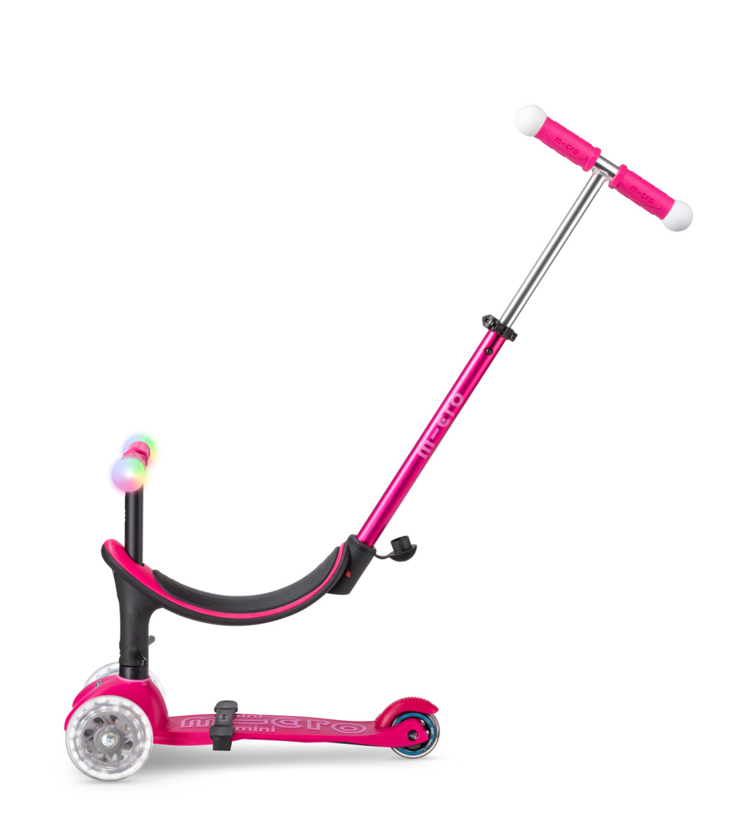 Oto ekspres dla malucha! Co robisz, gdy starszy brat i siostra już jeżdżą na Mini Micro, a najmłodszy chce się przyłączyć do zabawy, ale wciąż jest zbyt mały? Bez problemu - dzięki Mini Micro z siedziskiem!