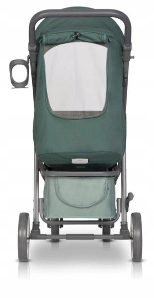 Duża dodatkowa sekcja budki ukryta jest pod suwakiem. Po jej otwarciu możesz pochylić budkę do przodu niemal całkowicie osłaniając dziecko. Regulacja budki posiada wygodny i cichy mechanizm, który zapewnia jej stabilną pozycję (wiatr nie będzie składał budki). W tylnej części wózka znajduje się duży zamykany suwakiem panel wentylacyjny i praktyczna kieszonka na drobiazgi.