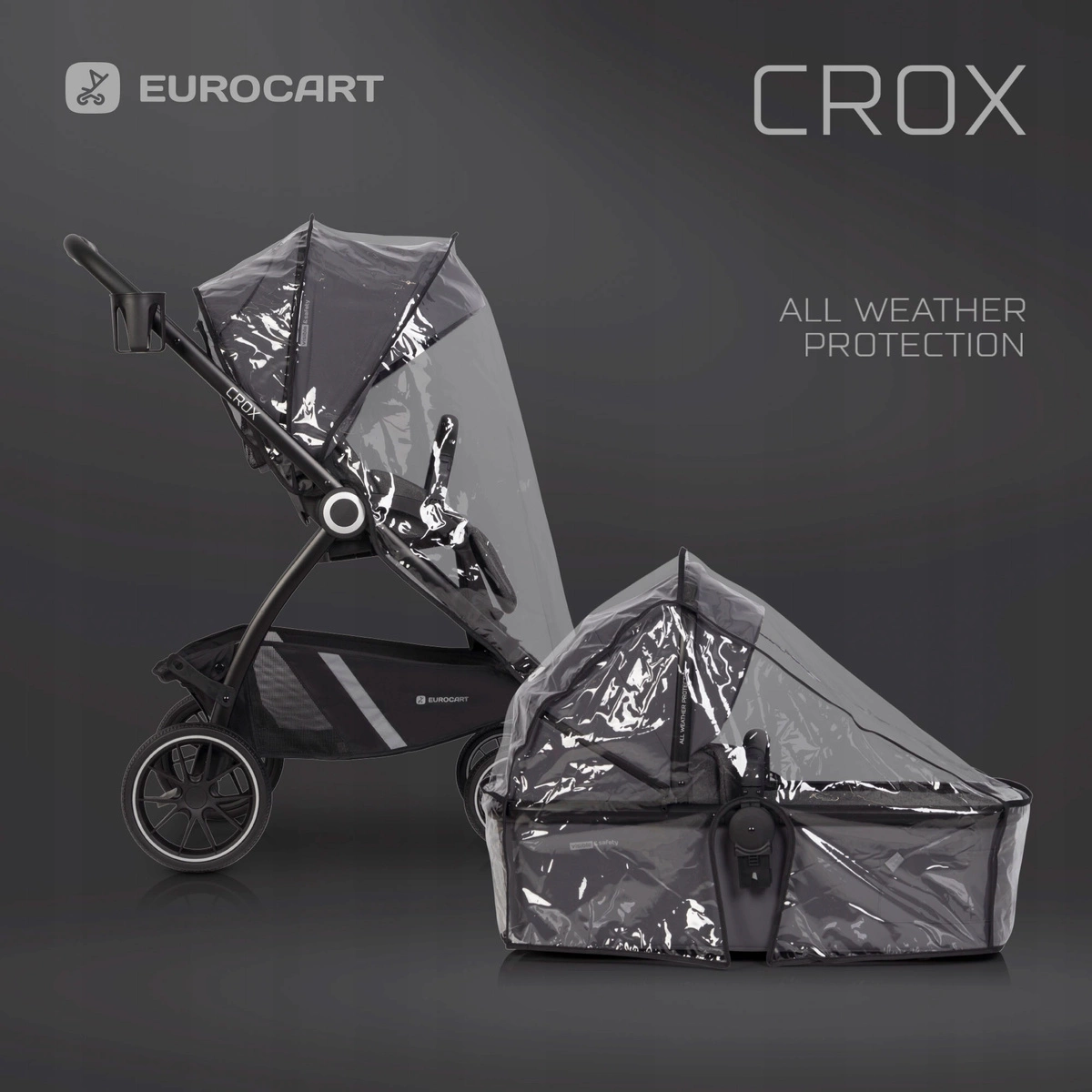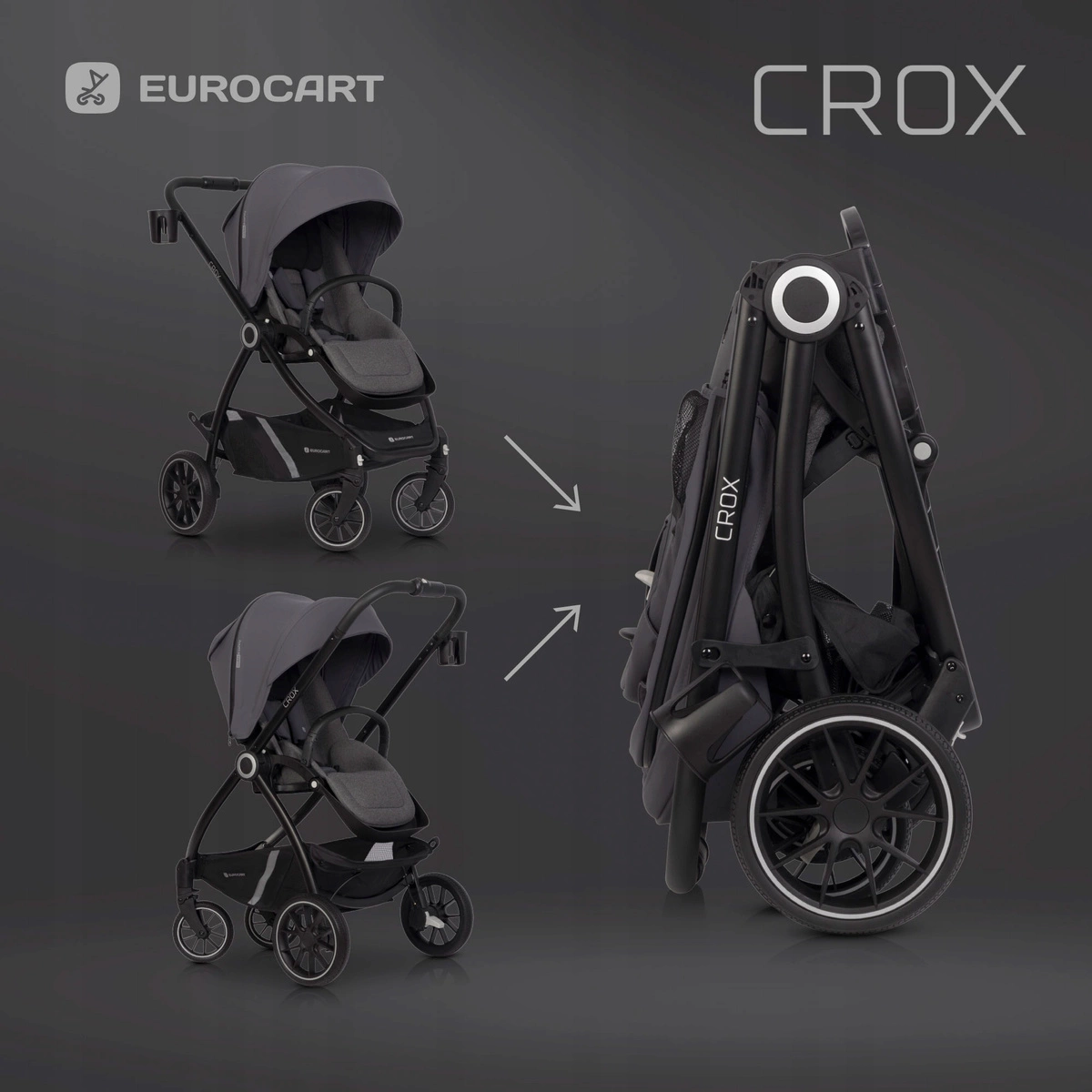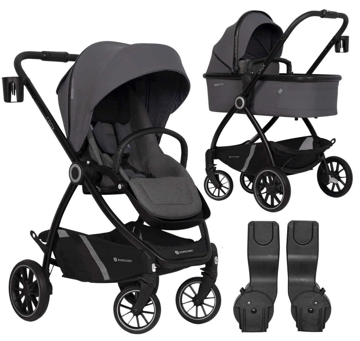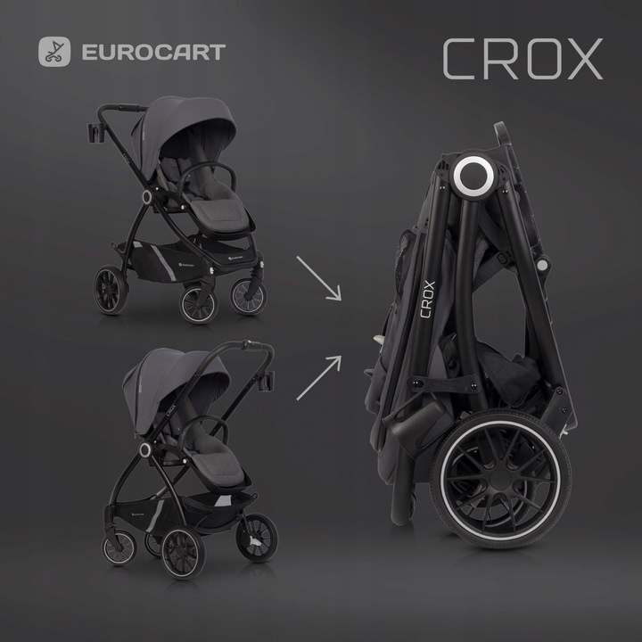 EURO CART CROX WÓZEK SPACEROWY LEKKI GONDOLA ADAPTERY 22KG 2W1