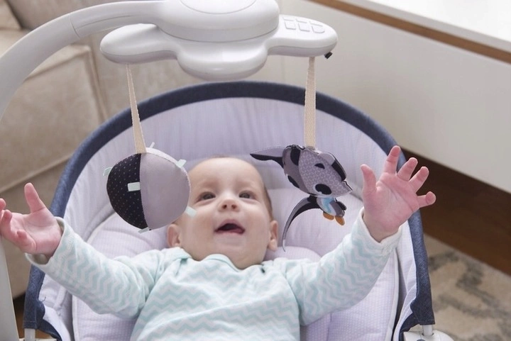 Czas w samotności i ciszy jest bardzo ważny dla rozwoju dziecka. Pozwól dziecku cieszyć się delikatnym kołysaniem bujaczka podczas spoglądania na muzyczne elektroniczne zabawki.