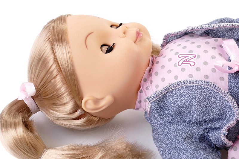Jej miękki materiał i urocze warkocze sprawiają, że lalka jest niezwykle atrakcyjna.