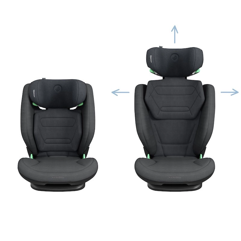 Dzieci w każdym wieku uwielbiają podróżować, relaksować się lub zasypiać w samochodzie. W niektórych fotelikach samochodowych problemem jest to, że bez odpowiedniego podparcia głowa dziecka opada do przodu, co bywa stresujące dla rodziców. Nowa konstrukcja fotelika RodiFix Pro² i-Size rozwiązuje ten problem, oferując funkcję 3-stopniowego odchylania oparcia, która umożliwia ustawienie wygodnej pozycji do snu. Dzięki otwartej, regulowanej budowie fotelik rośnie wraz z dzieckiem, zapewniając komfort i bezpieczeństwo przez wiele lat – od około 3,5 roku aż do 12.