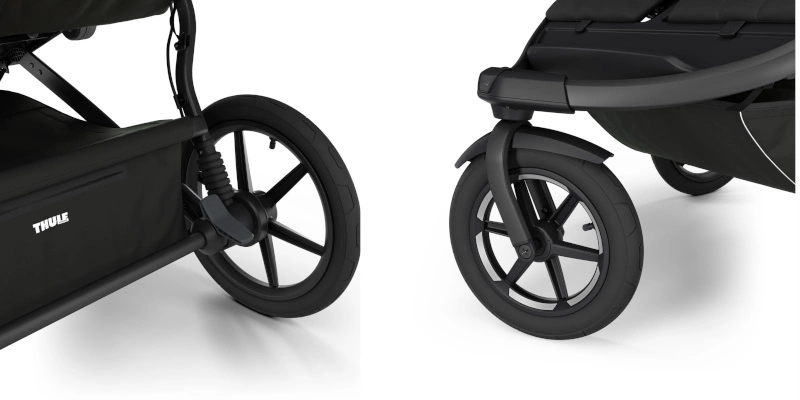 Komfortowe zawieszenie zapewnia płynną jazdę rodzicowi i dziecku.