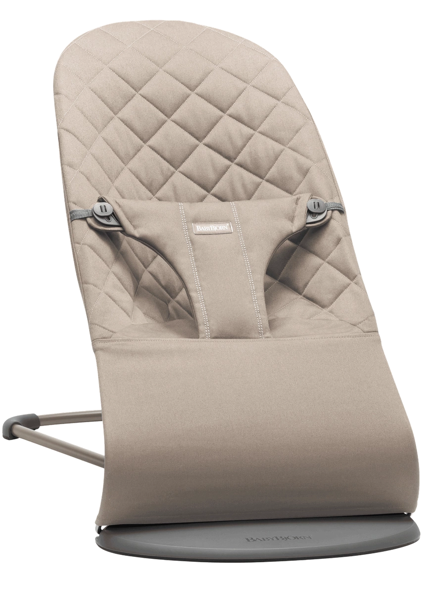 Wszystkie leżaczki BabyBjörn mają tę samą konstrukcję i funkcje. Różnią się tkaniną siedziska (materiały i faktury).