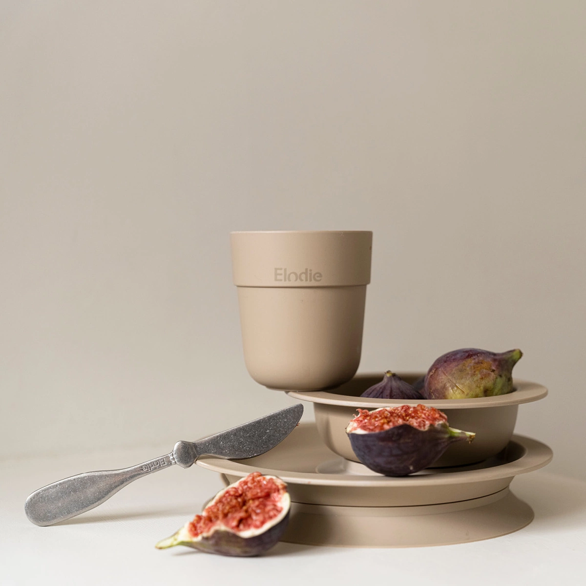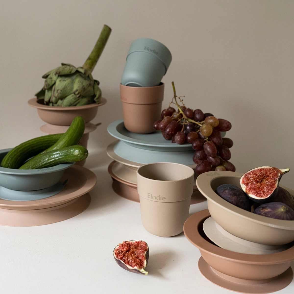 • 3-częściowy zestaw obiadowy dla dzieci Elodie Details składający się z talerza, miski i kubka wykonanych z materiałów przyjaznych dla środowiska.