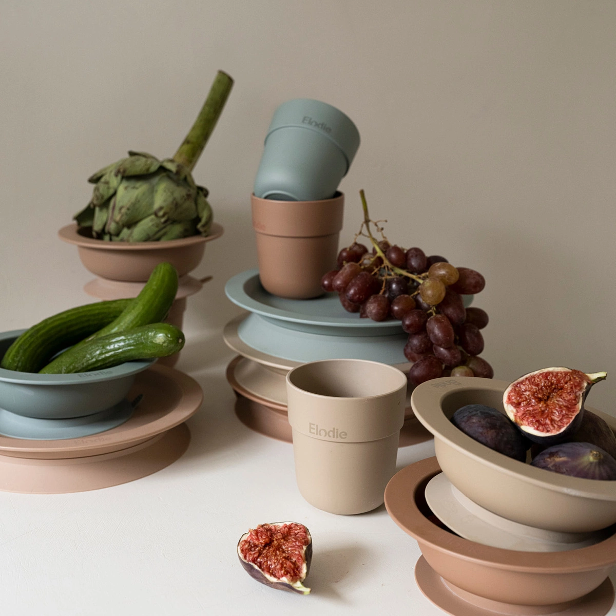 • 3-częściowy zestaw obiadowy dla dzieci Elodie Details składający się z talerza, miski i kubka wykonanych z materiałów przyjaznych dla środowiska.
