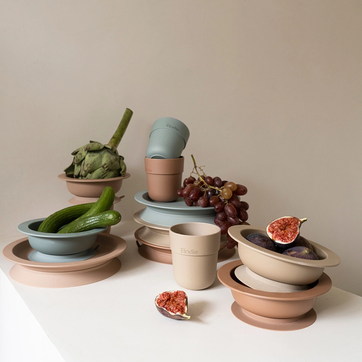 - 3-częściowy zestaw obiadowy dla dzieci Elodie Details składający się z talerza, miski i kubka wykonanych z materiałów przyjaznych dla środowiska.