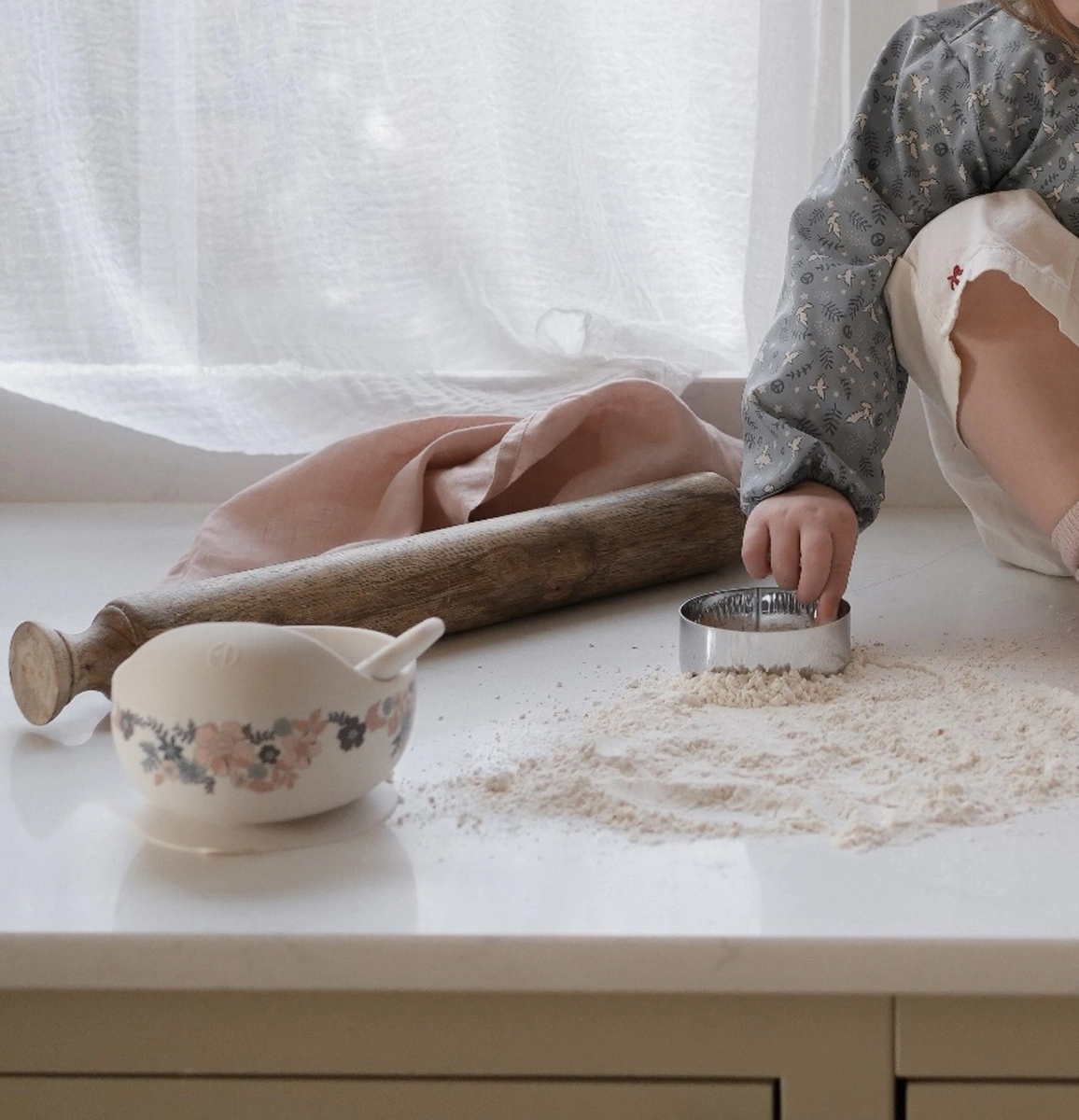 - Zestaw Elodie Details do nauki jedzenia. Silikonowa miseczka z przyssawką zapobiega bałaganowi. Wysokie brzegi ułatwiają naukę. Łyżeczka (stal nierdzewna + silikon) idealna do małych rączek. Można myć w zmywarce.
