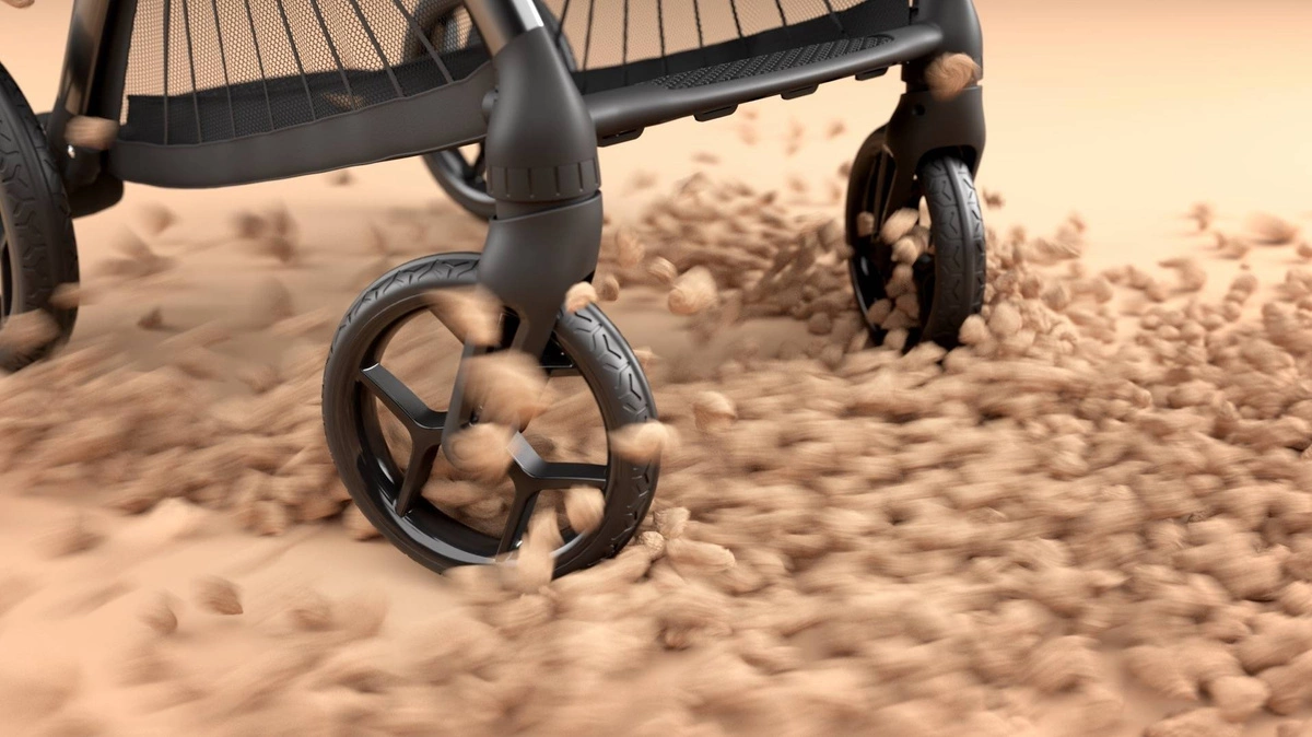 Wymienne i zdejmowane koła umożliwiają korzystanie z wózka w każdym terenie. Rozstaw osi „terenowy” zwiększa funkcjonalność, podnosi komfort użytkowania większego wózka i świetnie sprawdza się w terenie, natomiast przy ustawieniu „miejskim” rozstaw osi jest węższy, a Ty możesz się cieszyć kompaktowym, lekkim wózkiem, idealnym do miasta.