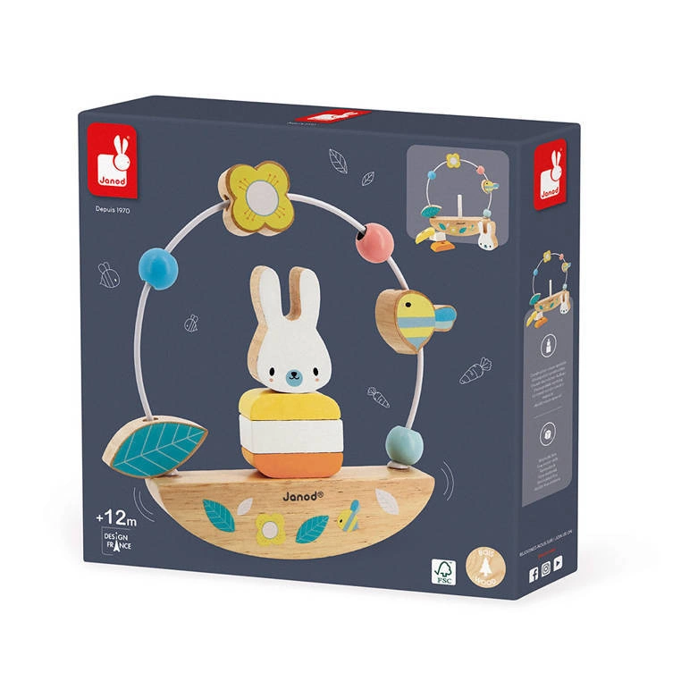 Janod - Drewniana równoważnia z pętlą edukacyjną Zajączek Pure 12 m+