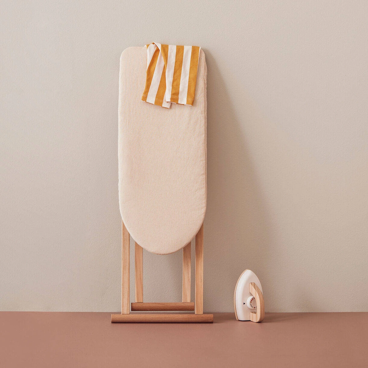 • Zestaw do prasowania z naturalnego drewna składa się z bezprzewodowego żelazka i deski do prasowania ze zdejmowanym pokrowcem z bawełny.