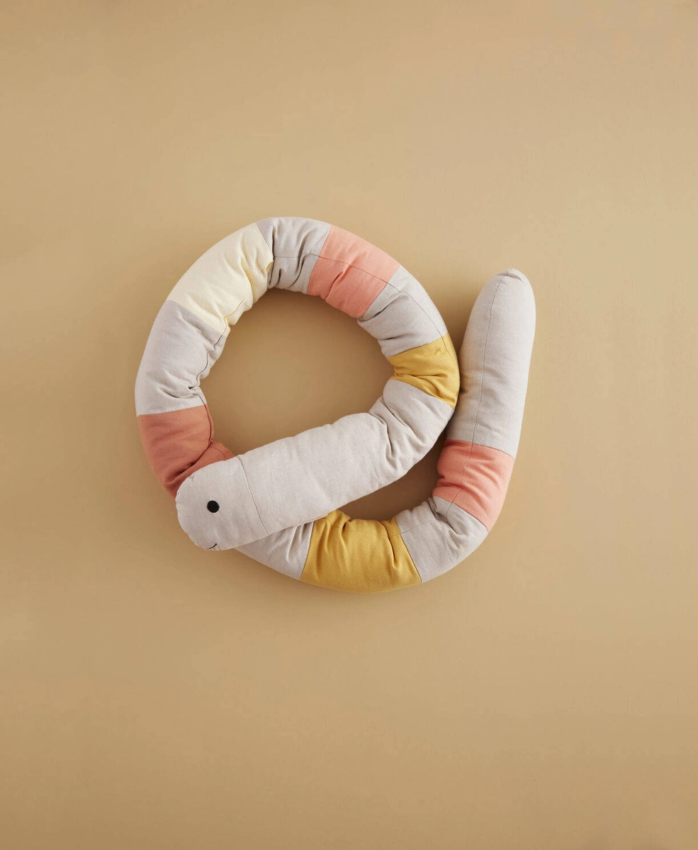 Przytulna długa poduszka w kształcie naszej dżdżownicy Meta to funkcjonalny przedmiot o wielu zastosowaniach.
