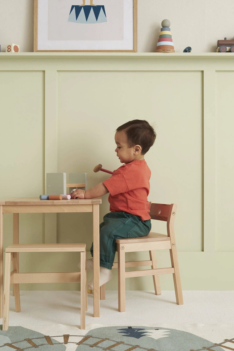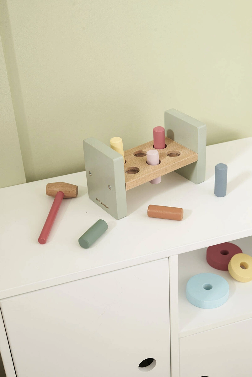 Fajna zabawka, dzięki której maluchy mogą ćwiczyć koncentrację oraz doskonalić koordynację wzrokowo-ruchową. Do ławeczki dołączonych jest sześć drewnianych kołków, w kolorach serii Edvin, które można wbijać młotkiem. A kiedy skończysz, po prostu odwróć ławeczkę i zacznij od nowa. Zabawka wykonana z drewna z certyfikatem FSC.
