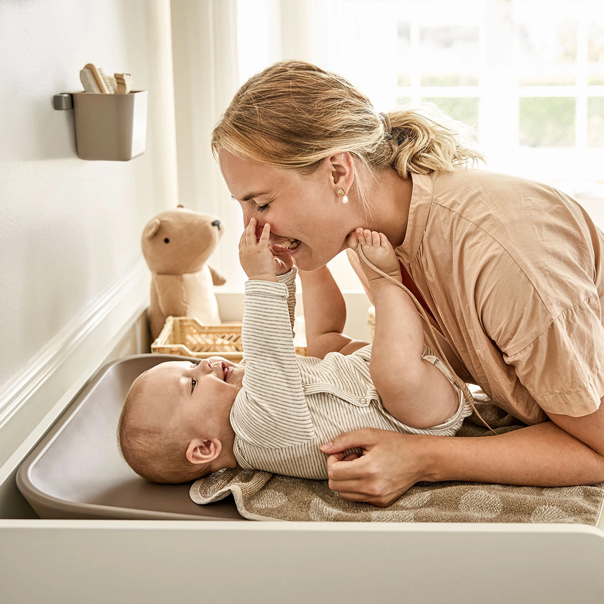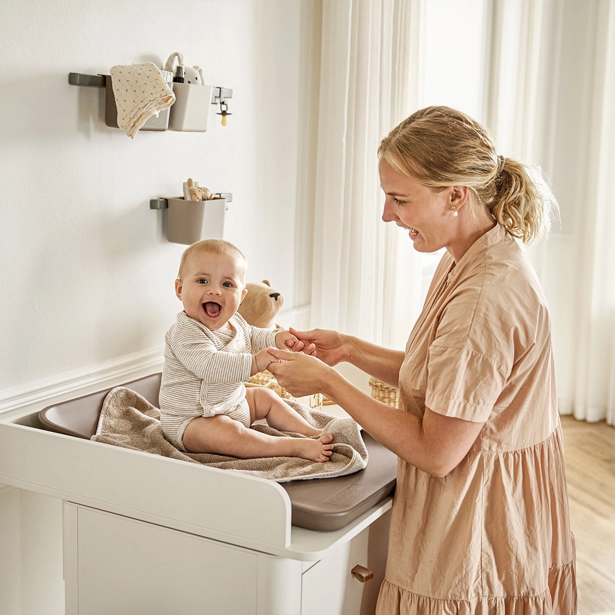 Podkład Leander jest wykonany z miękkiej, organicznej bawełny frotte i został zaprojektowany specjalnie do przewijaków Leander Matty™ i Leander Wally™. Użyj podkładu jako małego ręcznika lub rozłóż go na przewijaku, gdy chcesz zmienić dziecku pieluchę. Maluchowi będzie wygodniej i przyjemniej. Podkład chroni przewijak i pozwala uniknąć drobnych wypadków.