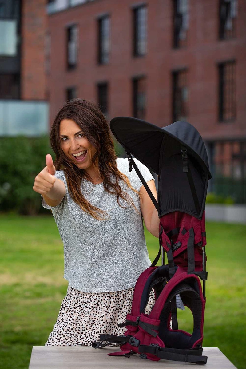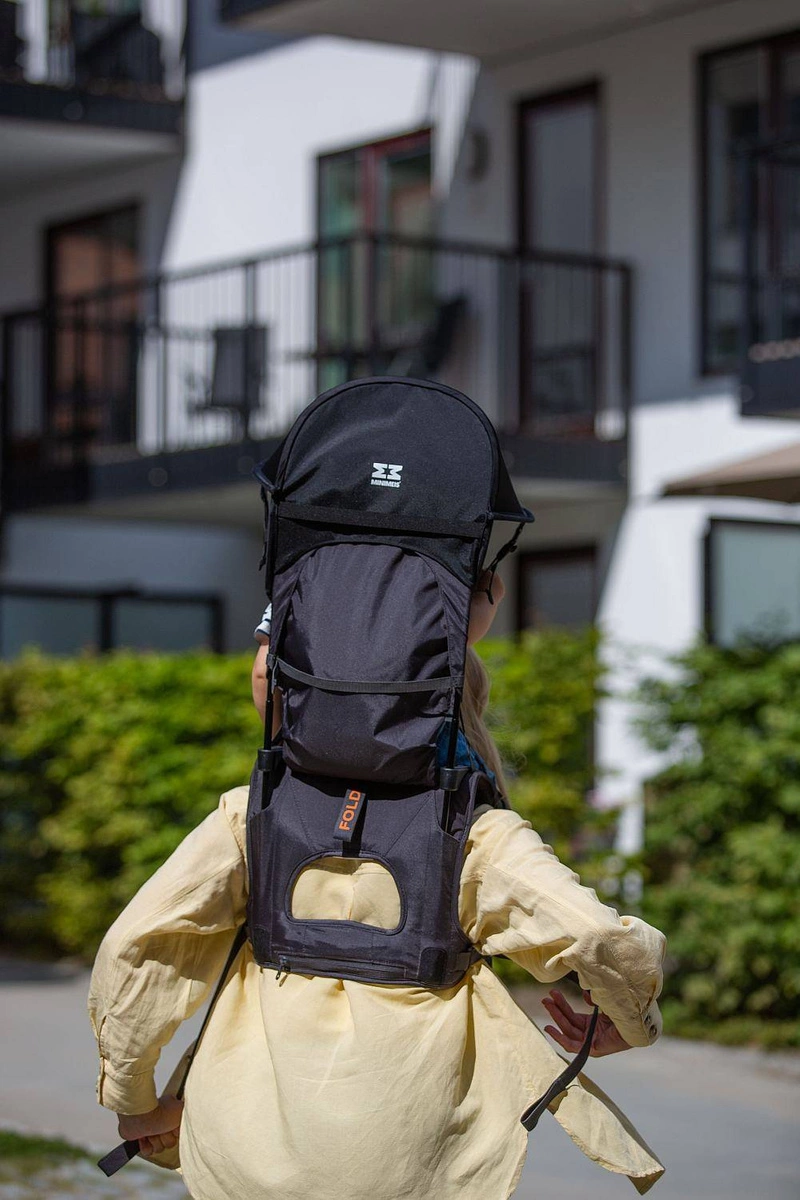 - Złożony daszek bez problemu zmieści się w plecaku rodzica HERO lub innej torbie