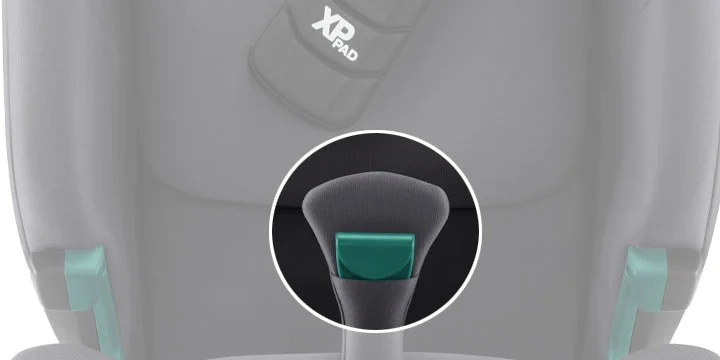 XP-Pad to element, który montujemy w foteliku, gdy dziecko korzysta z wersji z wysokim oparciem. Wykorzystująca piankę amortyzującą technologia zmniejsza nieoczekiwany ruch głowy dziecka nawet o 30%, co skutecznie chroni szyję pasażera podczas zderzenia czołowego.