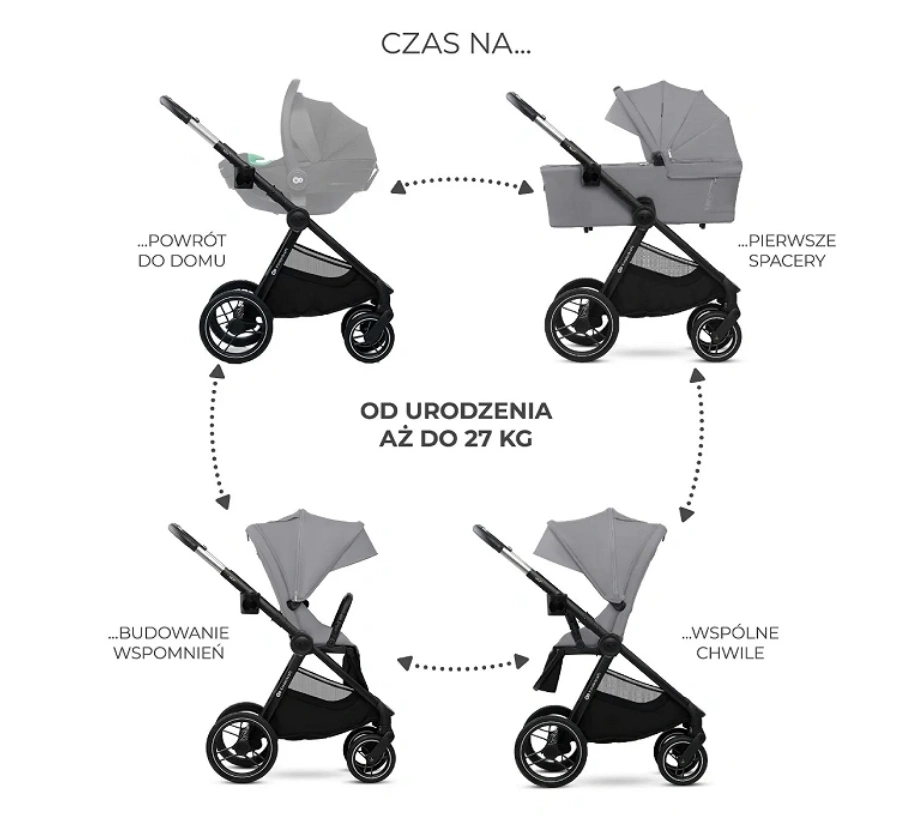 Dzięki możliwości prowadzenia wózka, nawet jedną ręką, łatwości składania spacerówki z siedziskiem w obu kierunkach oraz składania gondoli na płasko, będziesz mógł cieszyć się czasem spędzonym z dzieckiem - tak jak lubicie!