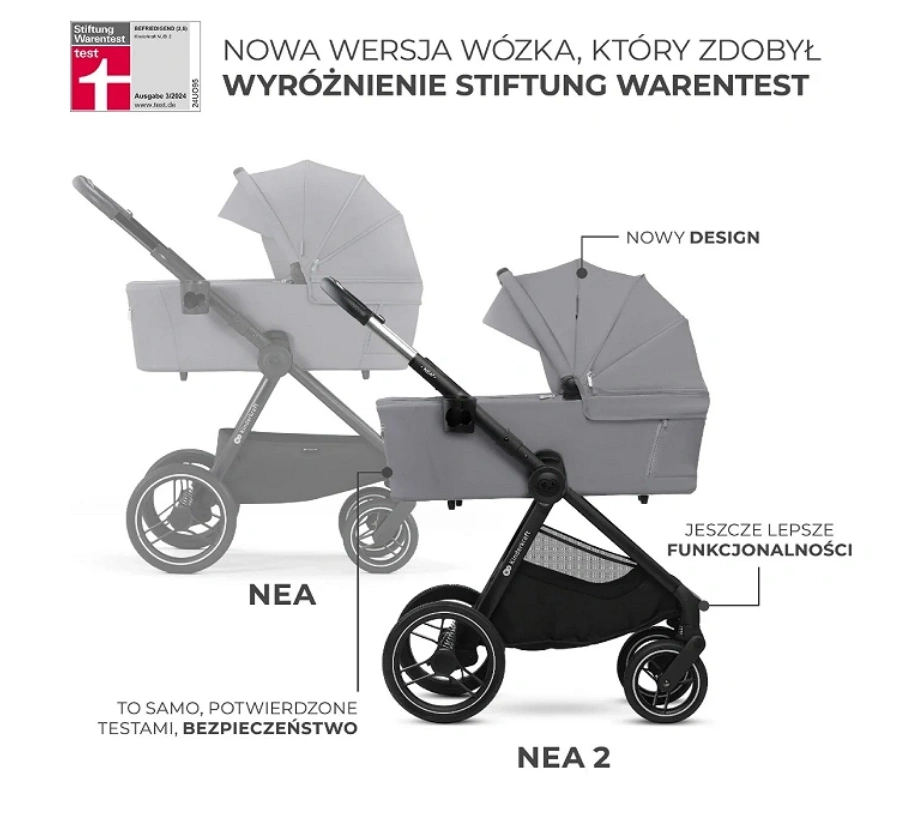 Nowa wersja wózka NEA, wyróżnionego w Stiftung Warentest jako najlepszy wśród wózków nadchodzi - odkryjcie NEA 2! Nowy design, usprawnione funkcjonalności, to samo bezpieczeństwo.