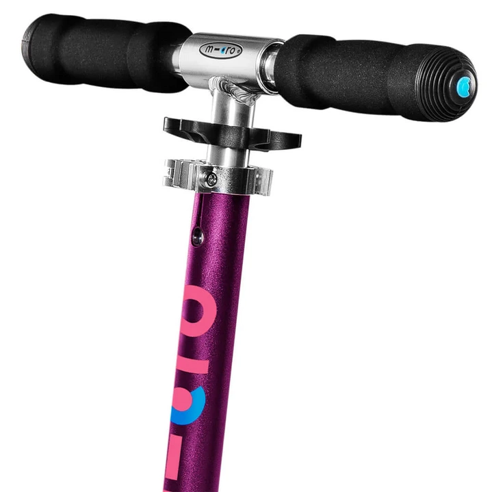 Wysokość rączki w Micro Sprite można regulować, tak żeby dopasować ją idealnie do wzrostu dziecka, dzięki czemu nie wyrośnie z niej szybko. Pozwala to również przejechać się czasem rodzicom.