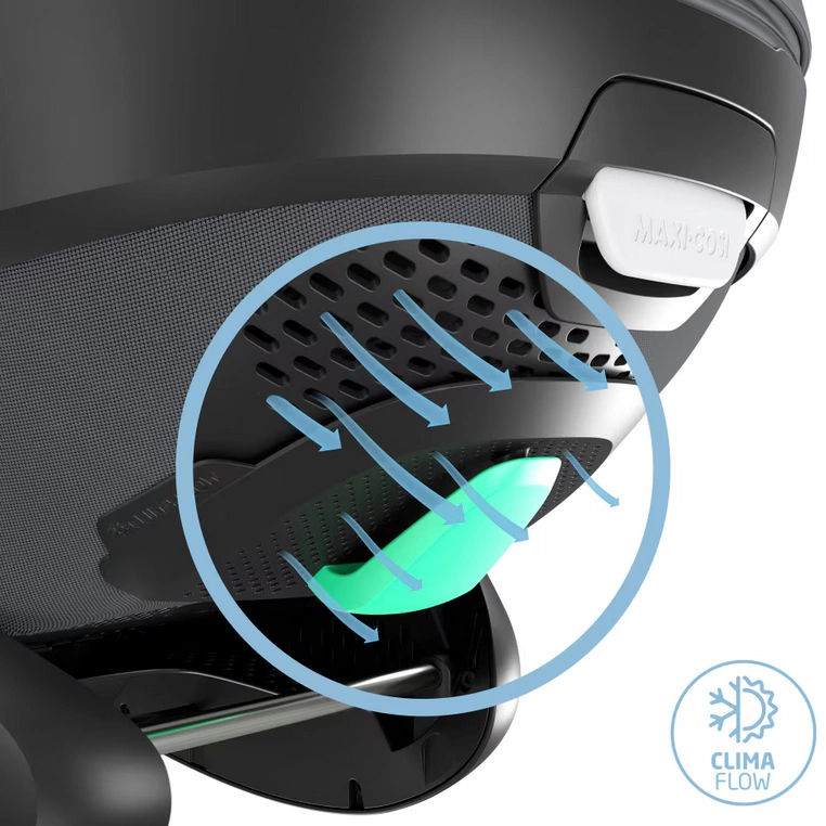Dla bezpieczeństwa i komfortu dziecka, fotelik samochodowy Maxi-Cosi Pebble 360 Pro jest wyposażony w tzw. system ClimaFlow, który umożliwia odpowiedni przepływ powietrza zapewniając dziecku komfort termiczny oraz specjalny system ochrony bocznej G-CELL, który jest dodatkowym zabezpieczeniem w razie zderzenia bocznego.