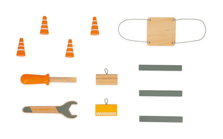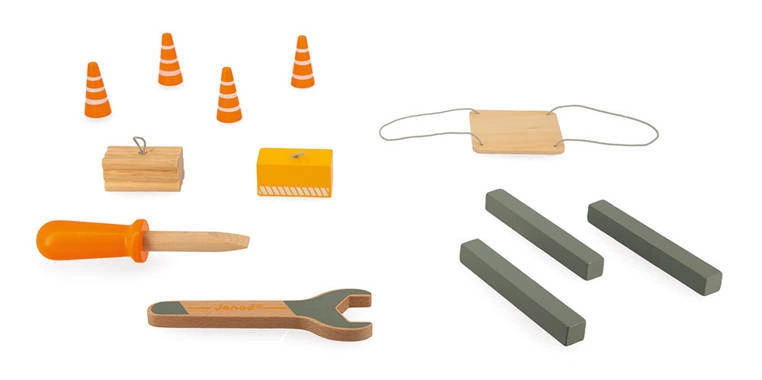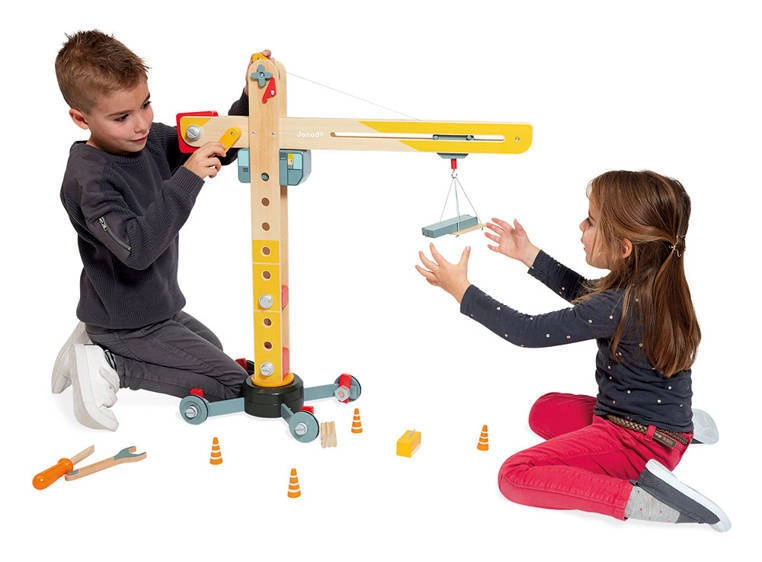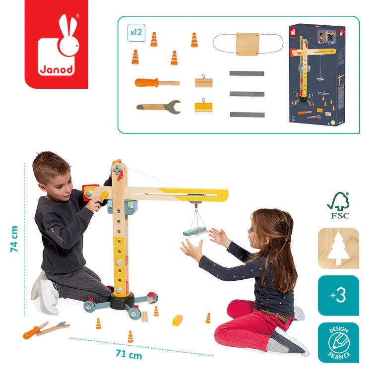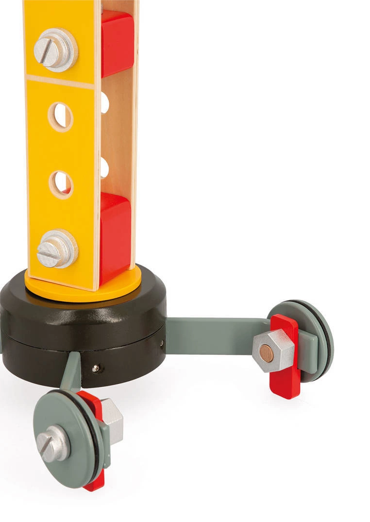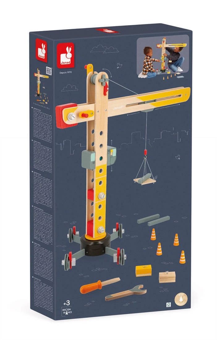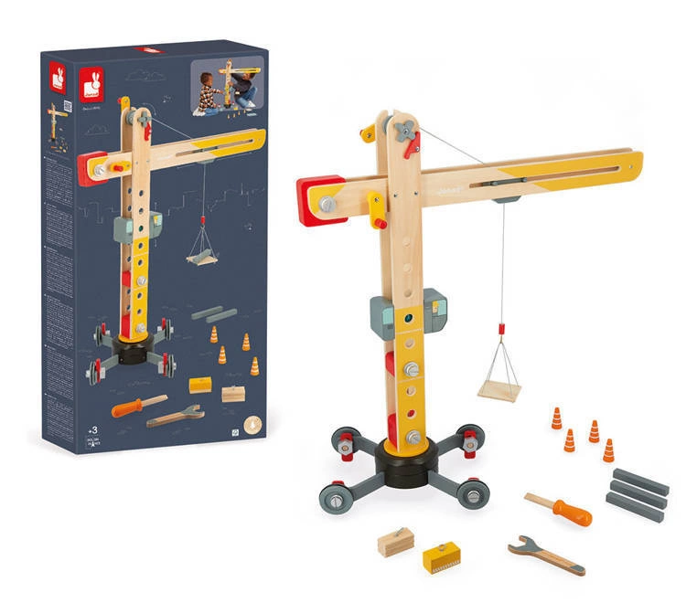 Janod - Duży drewniany dźwig do składania z narzędziami 3+