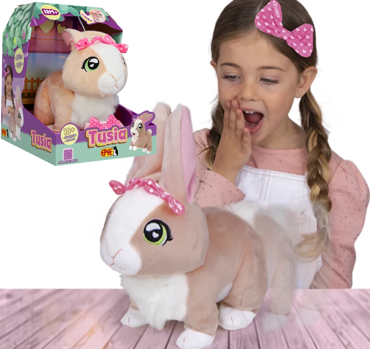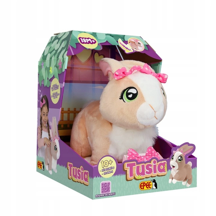 • Tusia to interaktywny króliczek, który skradnie serce każdemu i stanie się najlepszą przyjaciółką. Przypomina prawdziwe zwierzątko, porusza uszkami i wesoło kica, dzięki czemu zabawom nie będzie końca!