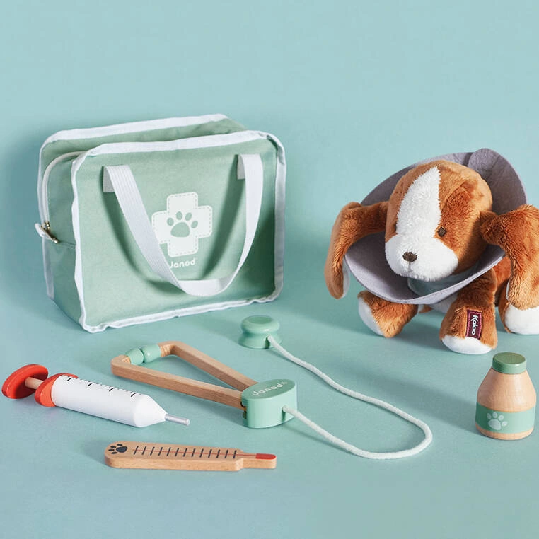 - Janod - Zestaw weterynarza z 10 akcesoriami 3+ to idealna zabawka dla dzieci, które lubią zwierzęta. Zestaw idealnie nadaje się na prezent.
