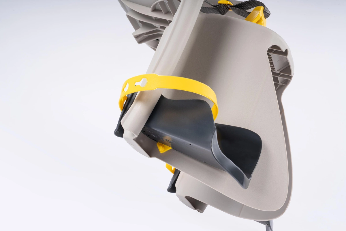 Ergonomicznie profilowane oparcie z wnęką na kask (kaski dostępne w naszej ofercie na innych aukcjach) oraz szerokie, stabilne boki zapewniają ochronę dziecka nawet w przypadku upadków, gwarantując komfort i bezpieczeństwo podczas jazdy.