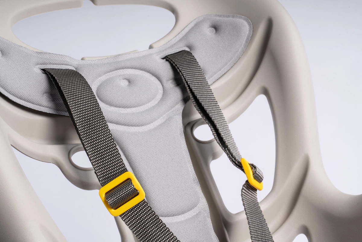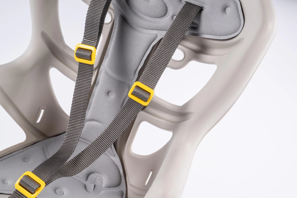 Fotelik rowerowy Bellelli PEPE STANDARD oferuje hipoalergiczną, miękką tapicerkę, która jest przypinana na rzepy, zapewniając maluchowi komfort podczas jazdy.