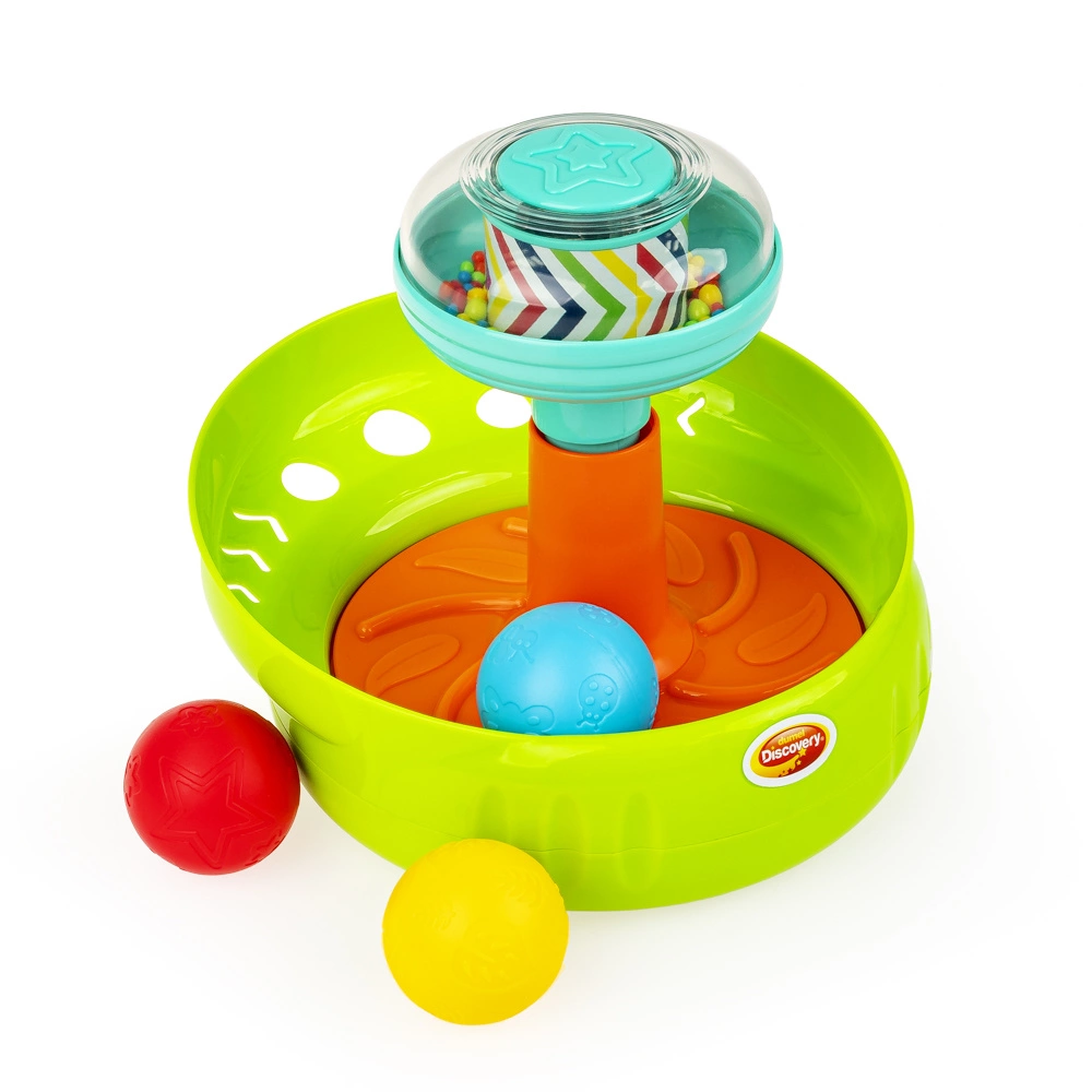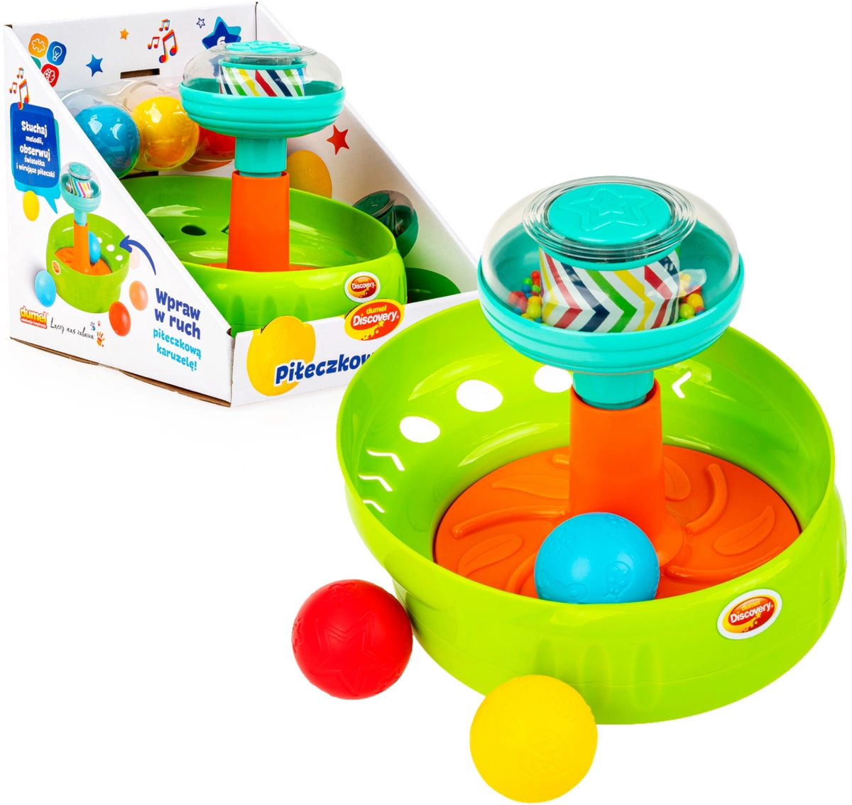 - po wciśnięciu tłoka piłeczki wirują przy błyskaniu światełek i dźwiękach melodii;