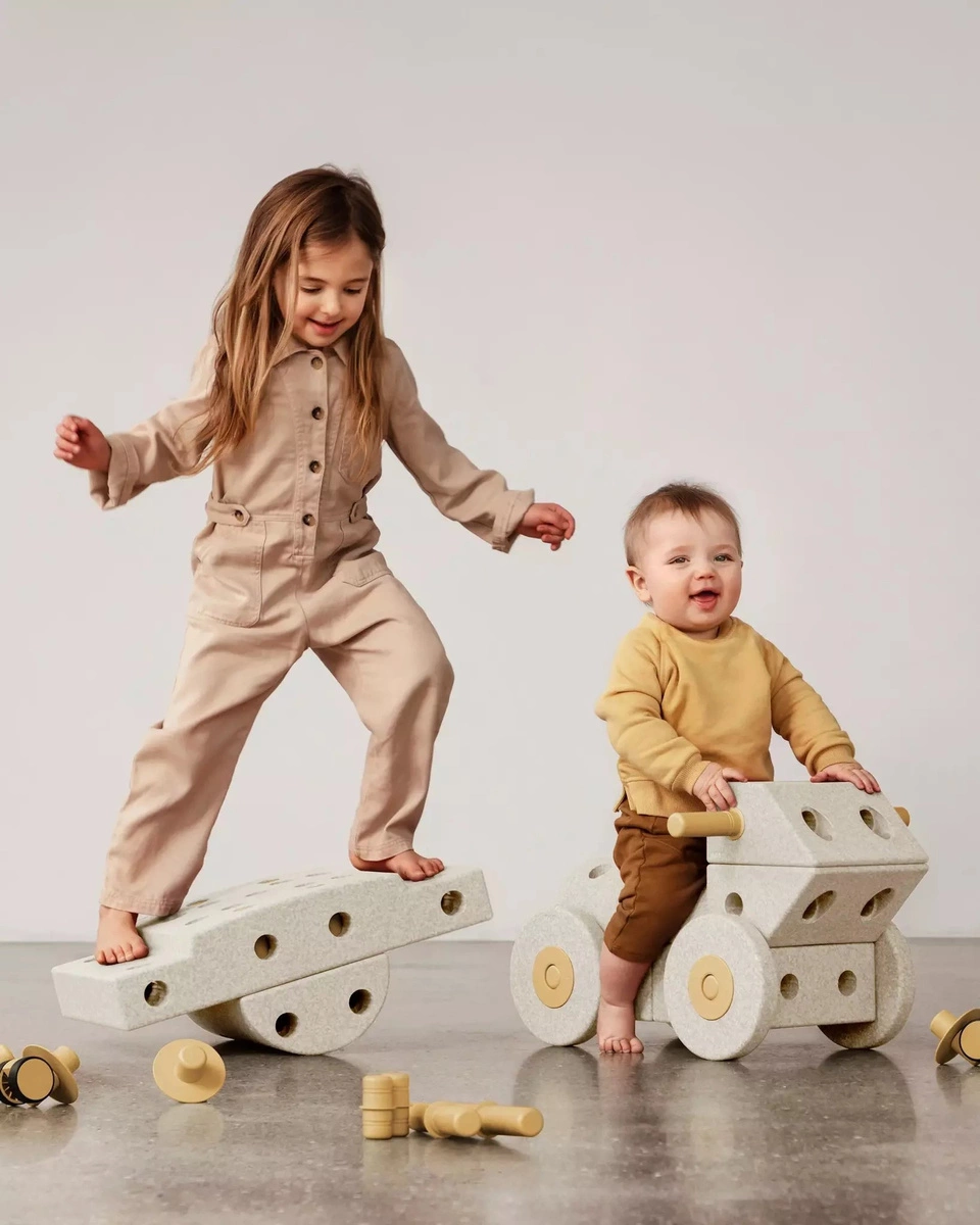 Podstawowy zestaw pozwala na stworzenie czterech fantastycznych konstrukcji i nie tylko. Deska balansująca, bujak, jeździk, roller. Zabawka MODU ma na celu rozwijanie zdolności motorycznych i zapewnienie dziecku ruchu który jest podstawą jego rozwoju. Jest to niezwykle ważne, ponieważ dzieci lepiej się uczą i bawią gdy są aktywne fizycznie.