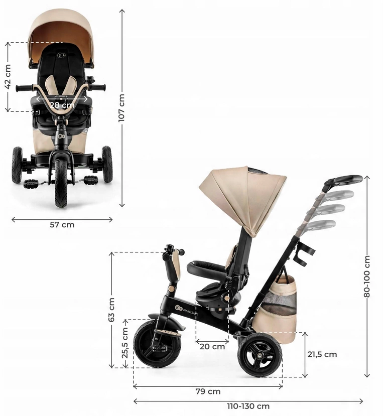 - Akcesoria: uchwyt na kubek, dzwonek, worko-plecak, koszyk na drobiazgi.