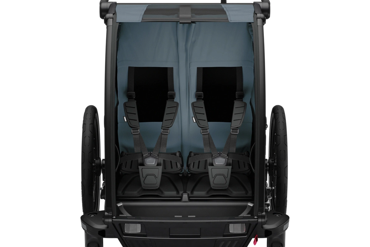 Wózek Thule Chariot Cab posiada wygodne, wyściełane siedziska, które są częściowo zdejmowane i łatwe w czyszczeniu, z siedziskiem XL oferującym zwiększoną wysokość siedzenia dla wyższych dzieci