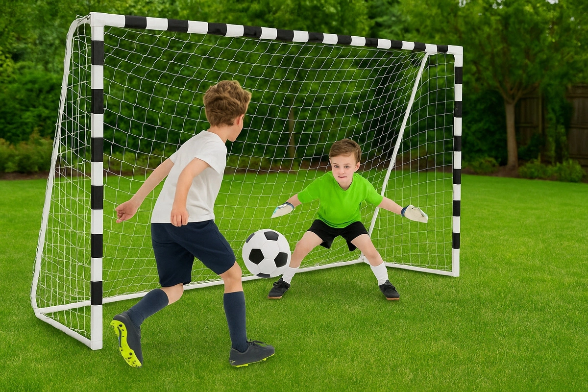• W tej ofercie kupisz pełny komplet do zmontowania przestawnej, treningowej bramki piłkarskiej dla dzieci wraz z akcesoriami do mocowania. Konstrukcja wykonana jest z solidnych, metalowych rur z wysokiej jakości wykończeniami. Zestaw zawiera wszystkie niezbędne elementy, również siatkę i kotwy do zamocowania ramy do podłoża. To idealny pomysł na prezent, dla wszystkich dzieci, które marzą o zostaniu wybitnym piłkarzem. Bramka idealnie nadaje się do rozstawienia w ogrodzie.