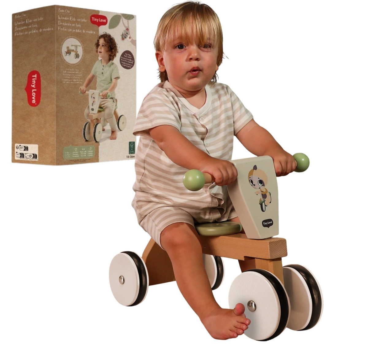 Zbudowany z drewna rowerek jest wyposażony w szerokie siedzisko, gumowe koła i wygodny uchwyt, dzięki czemu idealnie nadaje się do użytku wewnątrz jak i na zewnątrz pomieszczeń.