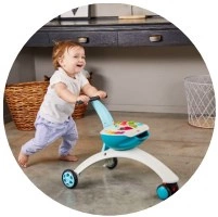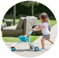 Ciesz się zabawą dla większych dzieci z zabawnym pchaczem w trybie odblokowanego przedniego koła, zapewniającego pełną manewrowość.