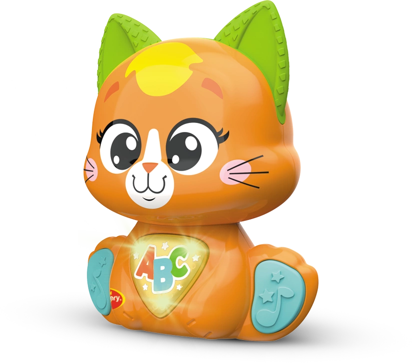 Jego rozśpiewany brzuszek odtwarza wesołe piosenki, a uruchamiający je przycisk, świeci podczas odtwarzania dźwięków. Kotek posiada czujnik dotyku na czółku, dzięki czemu, podczas głaskania kotka po głowie, maluch usłyszy wesołe frazy, wypowiadane przez zwierzaka. Kocie łapki także zadbają o rozrywkę malucha!