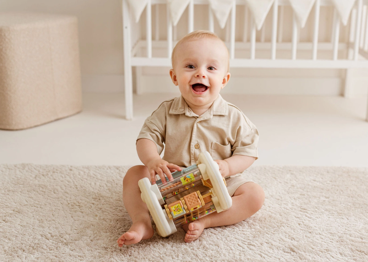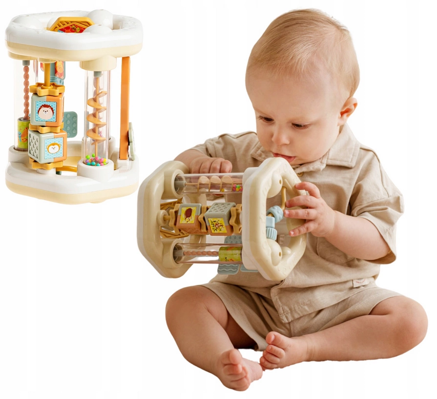 Zabawka, która tocząc się po podłodze zachęci Malucha do raczkowania, a różnorodne elementy i przesypujące się kuleczki dostarczą wiele radości!