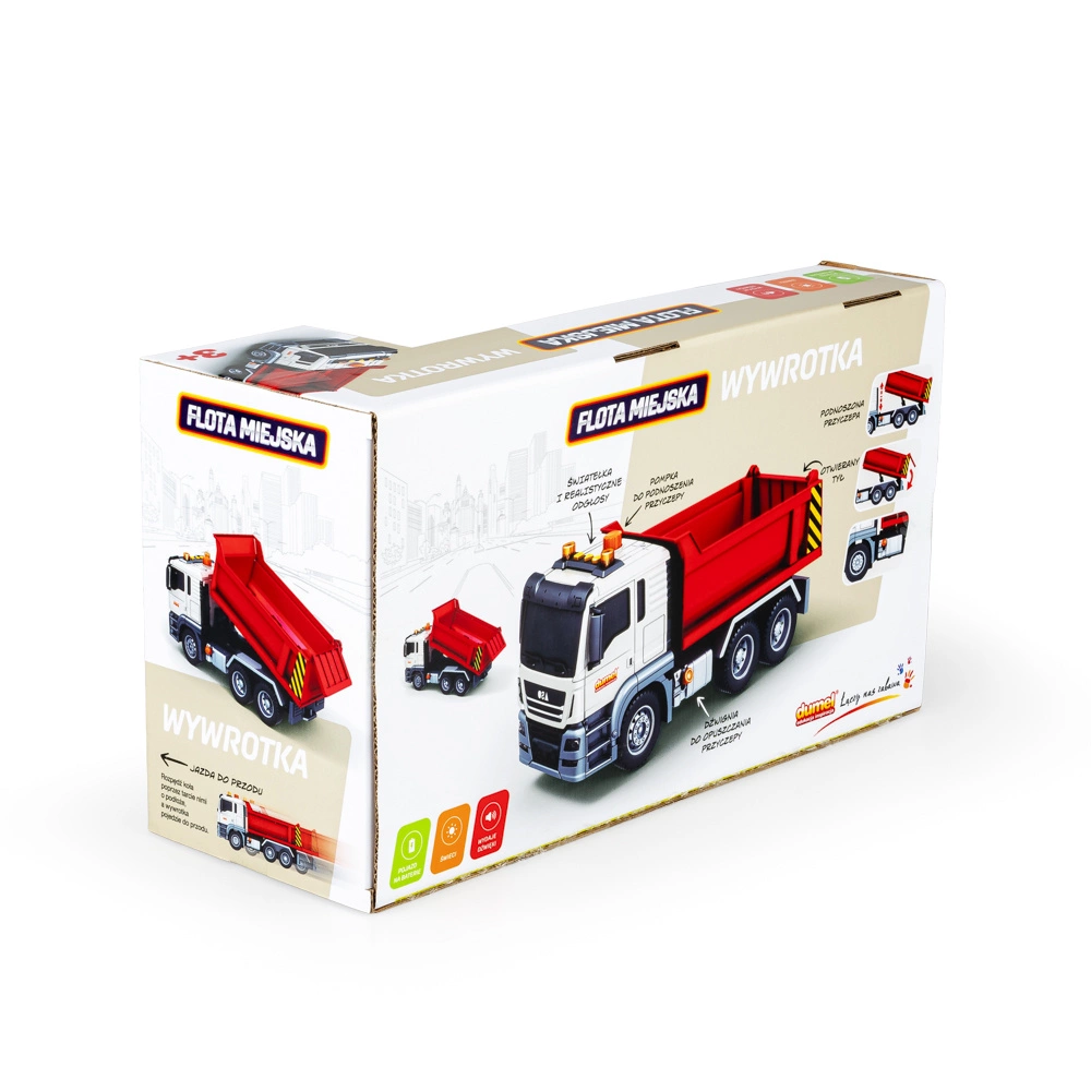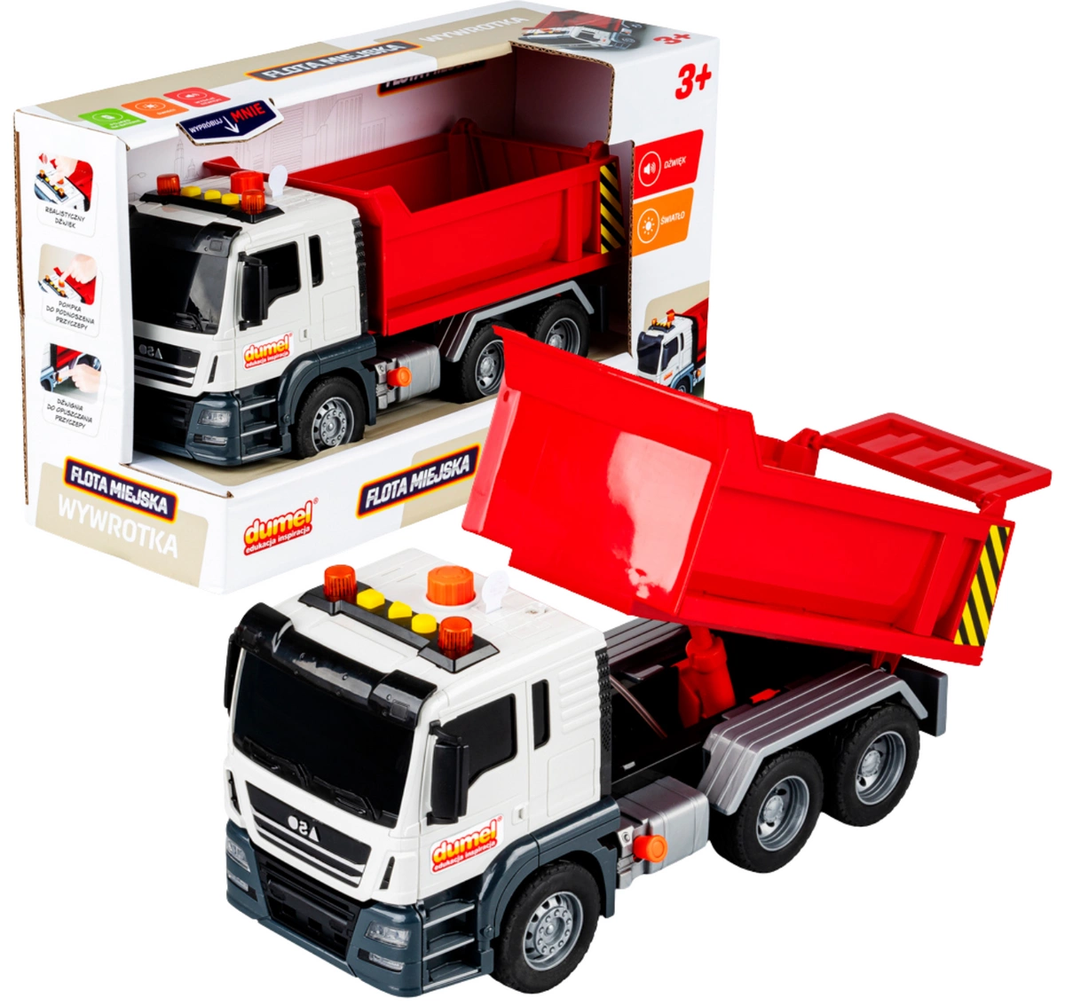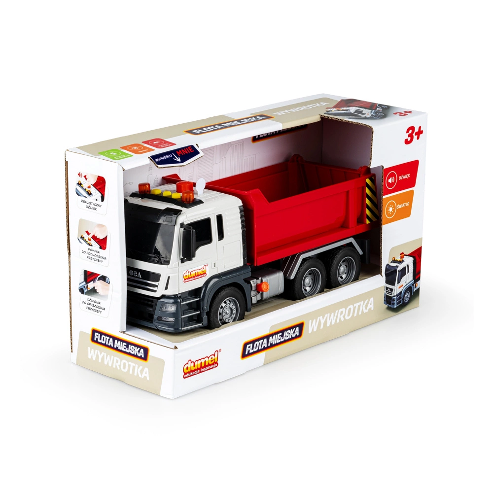 DUMEL FLOTA MIEJSKA WYWROTKA CIĘŻARÓWKA WÓZ BUDOWLANY DŹWIĘKI ŚWIATEŁKA 3+