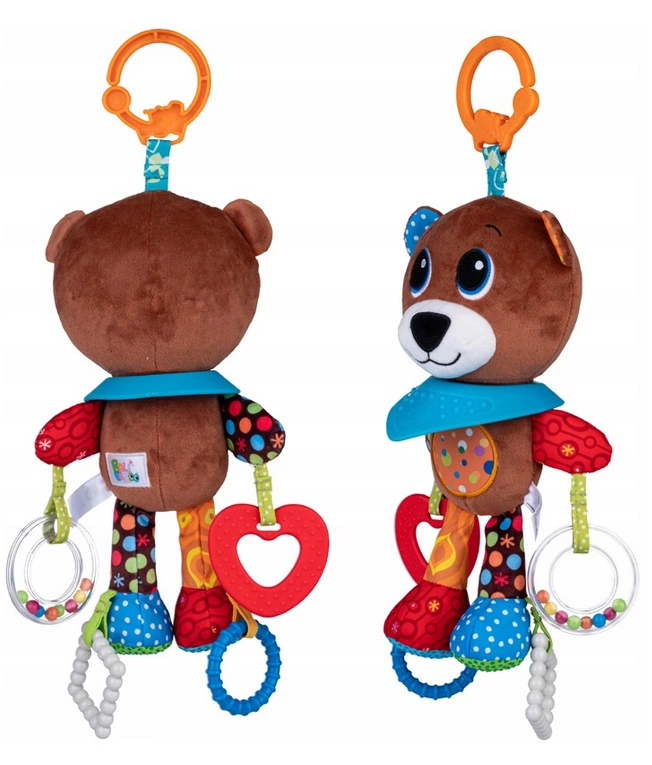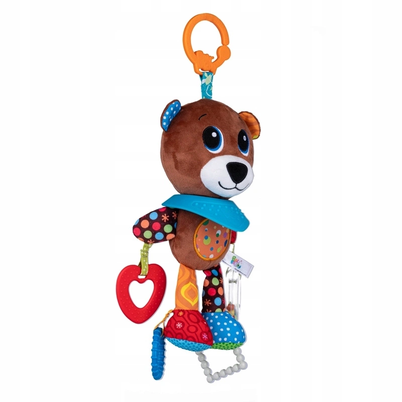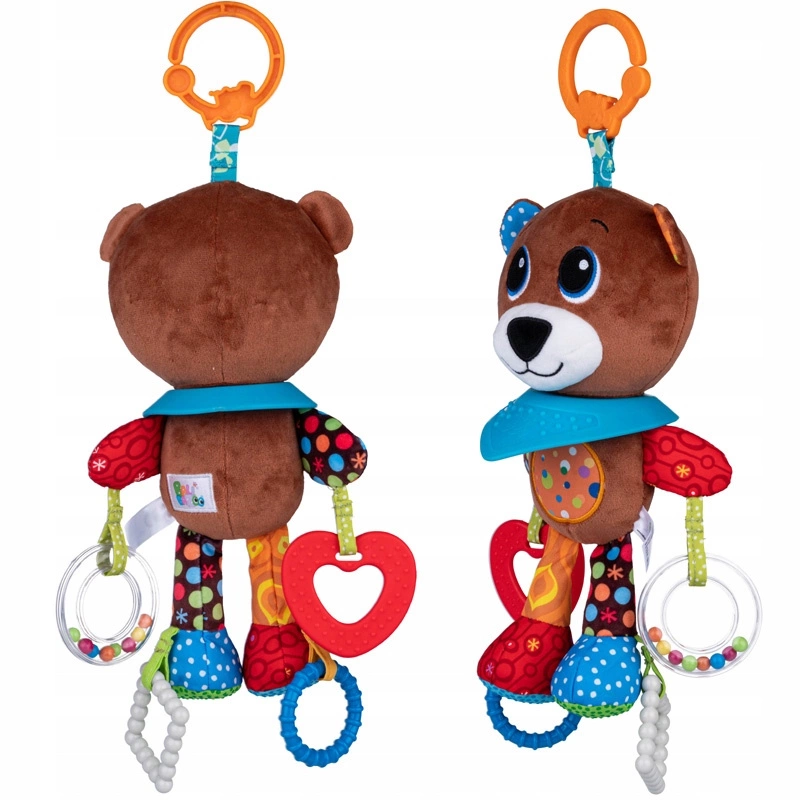 Misiek wyposażony został w kilka gryzaków z wypustkami i kółeczko-grzechotkę, pełną kolorowych kuleczek. W jego brzuszku kryje się jeszcze jedna niespodzianka, dzwoneczek, dzięki któremu Boguś czaruje pięknym dźwiękiem. Praktyczny uchwyt zawieszki pozwoli przyczepić ją w dowolnym miejscu, aby mogła towarzyszyć maluszkowi w każdej sytuacji.