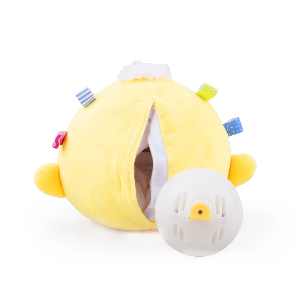 Aby uruchomić zabawkę, należy odpiąć rzep, i nacisnąć żółty przycisk, znajdujący się na plastikowej piłce, wewnątrz zwierzaka. Piłeczkę tę można wyjąć, w celu wymiany baterii lub wyprania pluszowego zwierzaka.