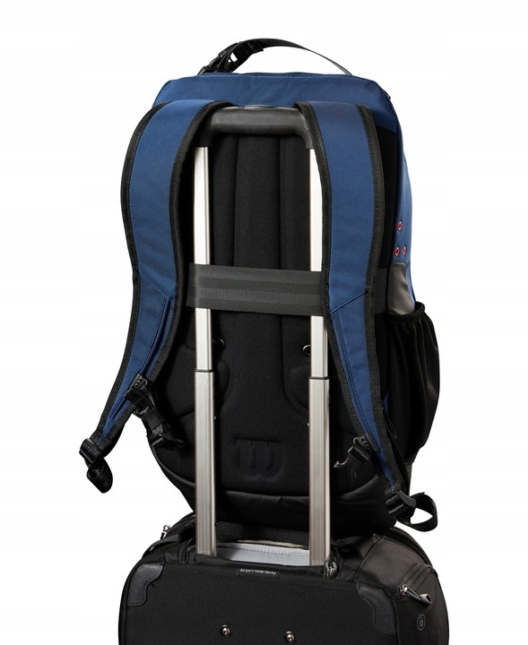 - Plecak posiada pasek dzięki, któremu można go zamocować na rączce większej torby podróżnej