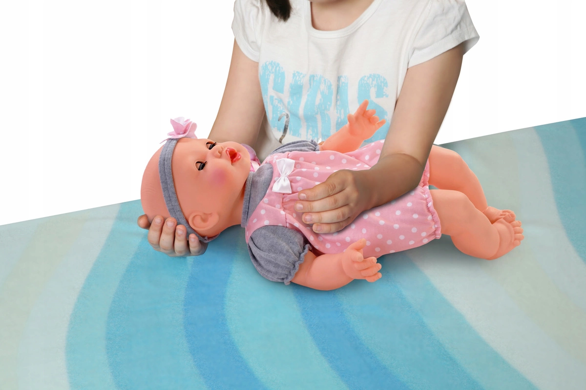 Po naciśnięciu na brzuszek lalka mówi: "MAMA, DZIADZIA".