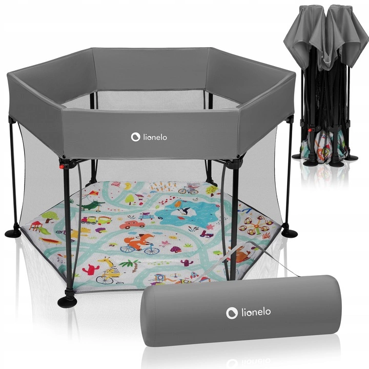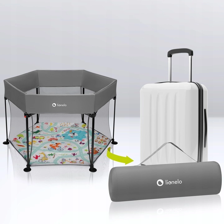 Duży kojec dla dziecka składany z torbą transportową i materacem w zestawie Lionelo Roel