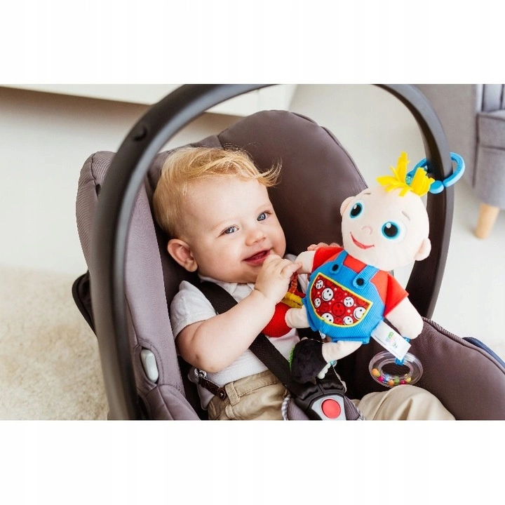 Bobas dla bobasa! Wesoła materiałowa lalka w kształcie małego chłopczyka to zawieszka, która towarzyszyć może dziecku w dowolnym miejscu, zarówno na spacerze, jak i w domowym zaciszu. Zabawka kryje w sobie wiele niespodzianek. Zdobią ją gryzaki oraz grzechotka, a sam materiał, z którego została wykonana odznacza się zróżnicowanymi fakturami, które stymulować będą zmysł dotyku dziecka. Praktyczna zawieszka pozwoli przyczepić lalkę w dowolnym miejscu.