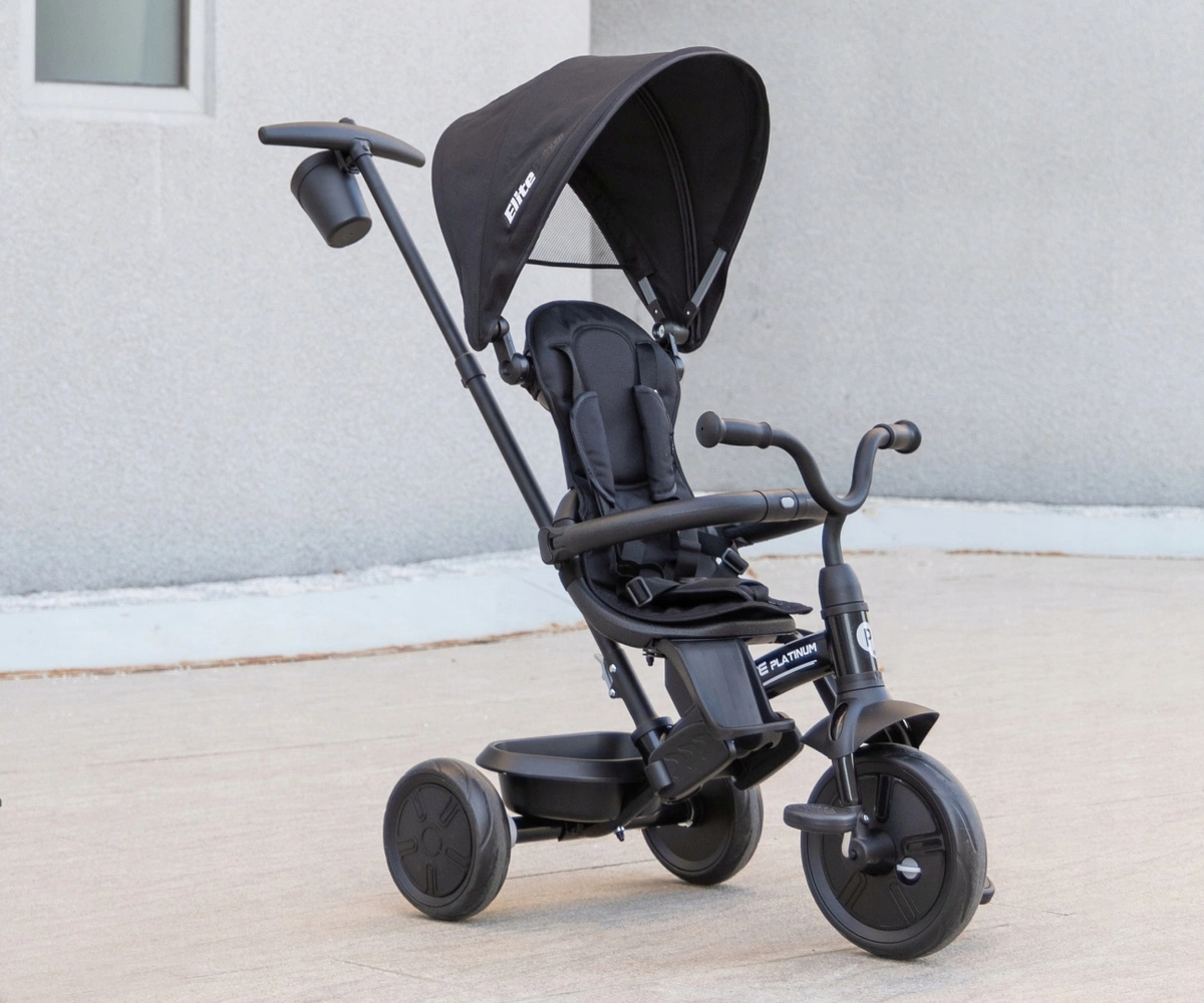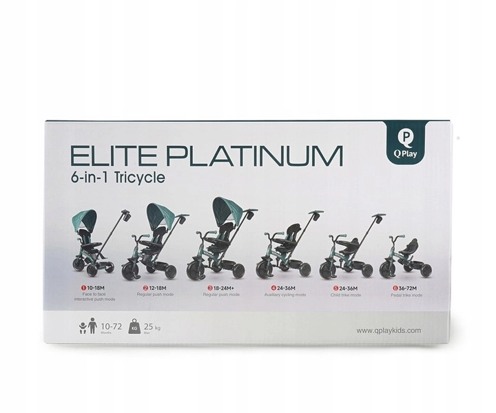 ELITE PLATINUM jest stabilny i bezpieczny, posiada nowoczesną konstrukcję i wygodne wyprofilowane siedzisko. Rowerek został wyposażony w barierkę zabezpieczająca dziecko przed wypadnięciem, pięciopunktowe pasy bezpieczeństwa oraz podnóżek, a piankowe koła umożliwiają cichą i komfortową jazdę. Po zdemontowaniu rączki, barierek, budki i pokrowca na siedzisko ELITE PLATINUM będzie służył jako rowerek trójkołowy. Dzięki funkcji „wolnego koła” dziecko może swobodnie pedałować i skręcać, a rączka dla rodzica nadal może korygować prędkość i kierunek przemieszczania.