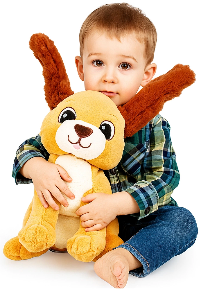 Ten pluszowy słodziak posiada dwie aktywne łapki, których naciskanie „budzi” pieska do zabawy.