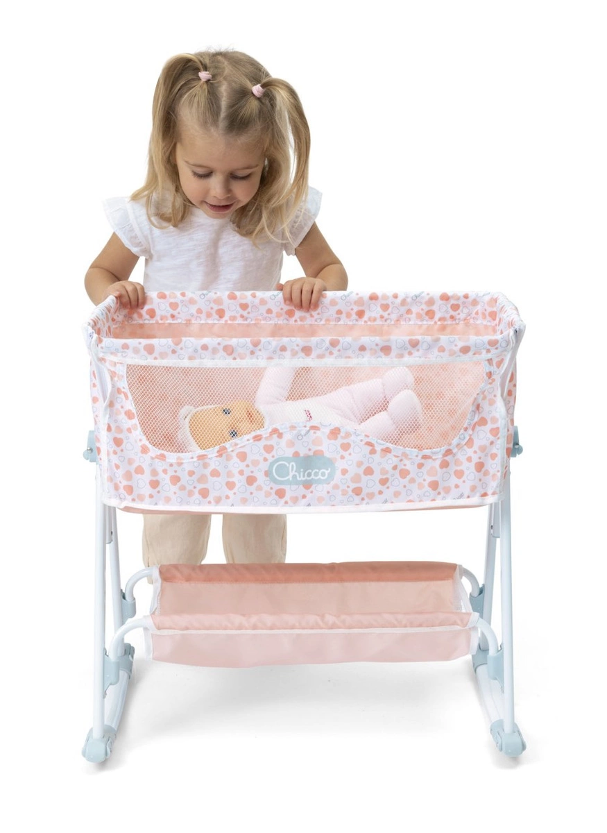 • Dodaj uroku zabawie dzięki realistycznej kołysce Next2Me z serii My First Doll marki Chicco — idealnej dla małych opiekunów lalek od około 3 lat.