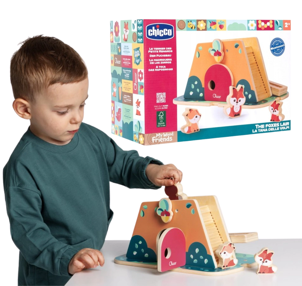 Drewniana Kryjówka Lisów CHICCO to wyjątkowa zabawka z serii MY WOOD FRIENDS, zaprojektowana z myślą o wszechstronnym rozwoju dziecka.