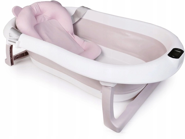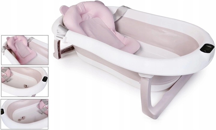 - Jest duża składana wanienką dziecięcą z wbudowanym termometrem, uchwytem na prysznic oraz poduszką.